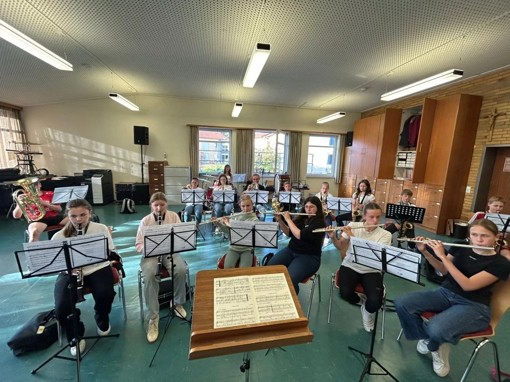 Gut gelaunt und mit noch viel Energie starteten am Samstag, den 03. Mai, circa 20 Jungmusikerinnen und Jungmusiker in unsere diesjährige Musikernacht. Zum Einstieg probten wir gemeinsam drei Stücke, die wir am nächsten Morgen bei einem kleinen Abschlusskonzert zur Aufführung brachten. Die Besonderheit dieses Jahr bestand darin, dass einige Neue mit im Orchester dabei waren, die sich aber Dank der Hilfe und Unterstützung durch ihre Registerkollegen gut einfinden konnten.
