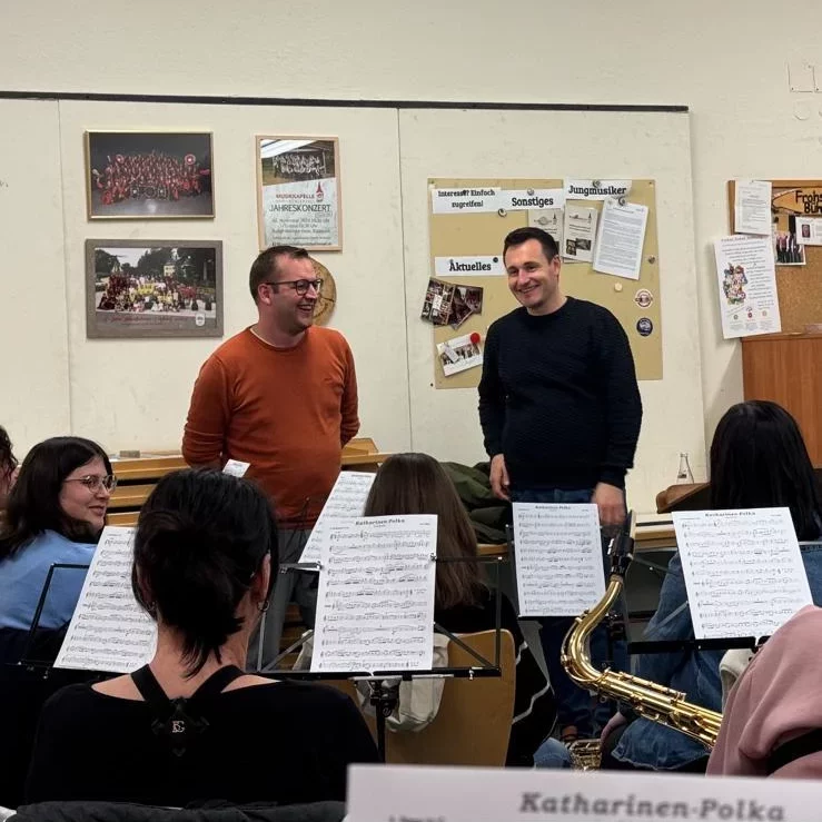 Die Musikstücke „Katharinen-Polka“, „Leonie-Walzer“ und „Steeephans-Polka“ wurden geprobt.
